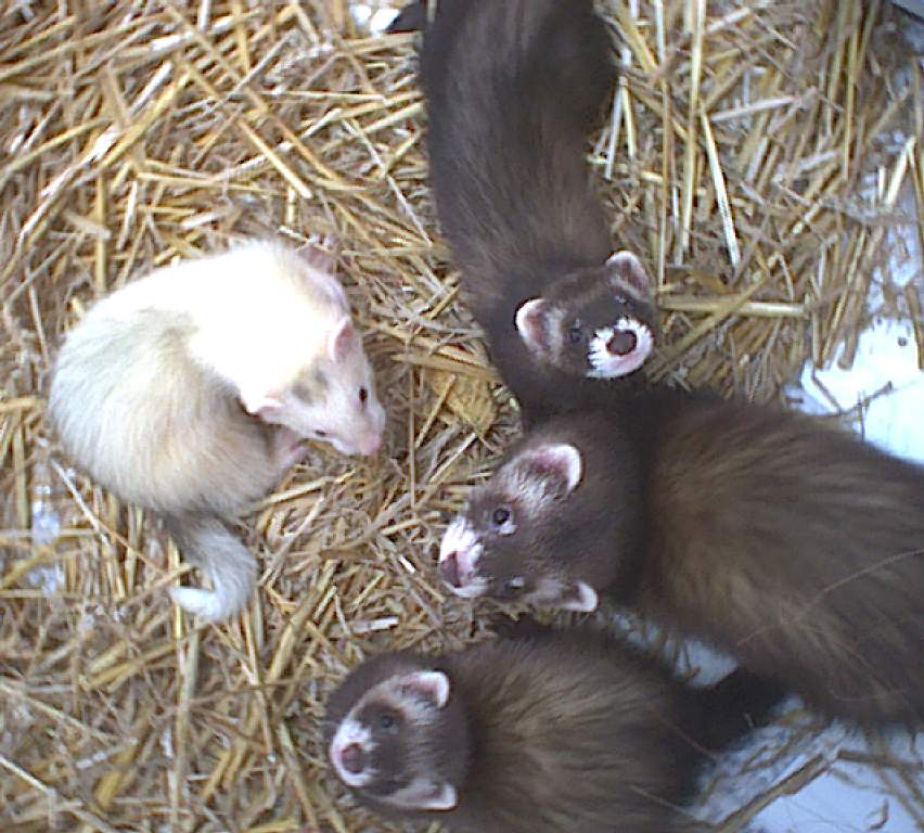 Frühsommer 2003 bekamen wir wieder ein Beispiel für 2. Generation und zwar 5 Fähen aus Bayern, die dort im Tierheim von ihrer Züchterin abgegeben worden sind wegen Handlingsprobleme - dies ist vermutlich so ein Fall von Züchter ohne Fachwissen geschweige denn Grundwissen der Vererbungslehre die das nur mal ausprobieren wollten - für uns damals der 2. Fall da wir im voherigem Jahr schon 2 Iltiswelpen der 2. Generation aufnehmen mußten. Alle 7 waren Jungtiere und extrem bissig was aber nicht allein wegen der Abstammung so war, nein nur weil die "Züchter" sie nicht zu händeln wußten und lieber garnicht Menschenkontakt anfangen wollten um eigener Blessuren vorzubeugen (wir hoffen sie haben aus dem Unsinn damals gelernt!).